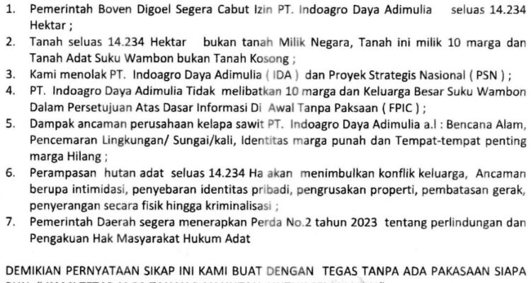 Tanah Merah, DogiyaiPos — Sebanyak 10 marga dari Suku Wambon Tekamerop, pemilik